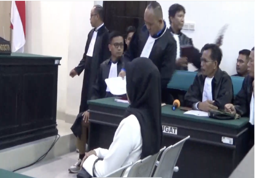 Sidang dengan agenda pembacaan dakwaan oleh Jaksa Penuntut Umum (JPU) atas kasus dugaan penganiayaan yang berlangsung didalam kelas saat proses belajar mengajar sedang berlangsung.
