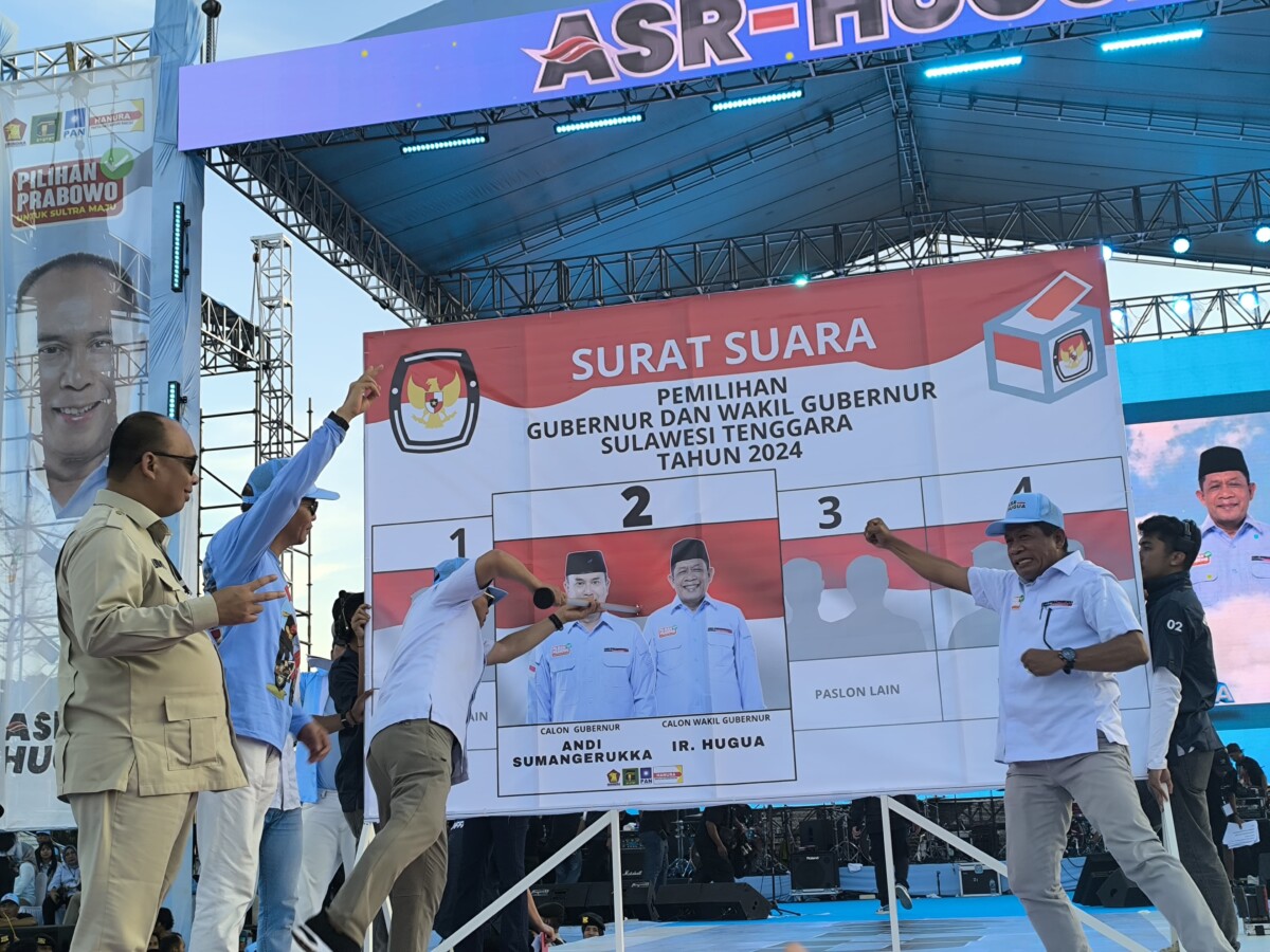 IndeksSultra.com, Kendari- Pasangan calon Gubernur dan Wakil Gubernur Sulawesi Tenggara (Sultra) nomor urut dua, Andi Sumangerukka (ASR) dan Hugua menggelar kampanye akbar part I yang bertajuk Pesta Rakyat Berkah, Sabtu 9 November 2024.