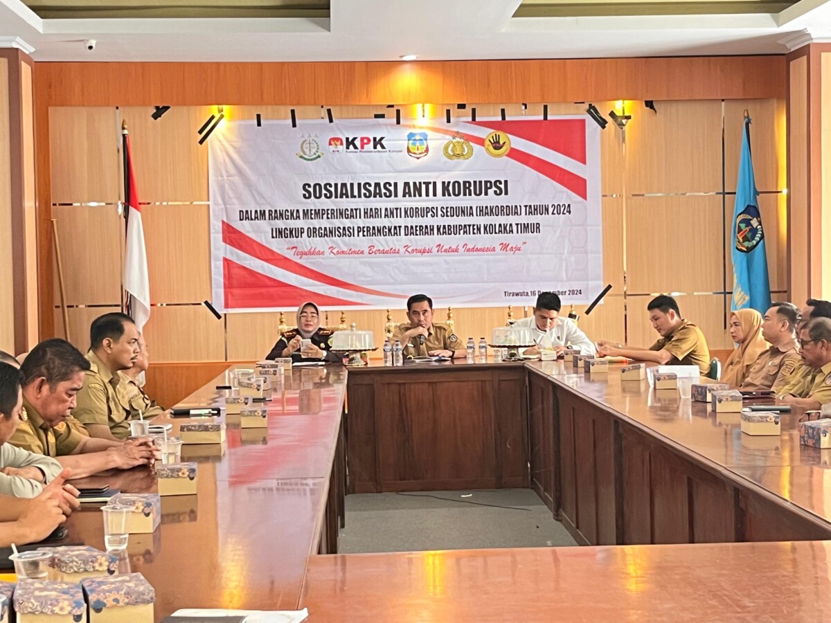 IndeksSultra.com, Kolak Timur- Peringati Hari Anti Korupsi Sedunia (Hakordia) 2024, Pemerintah Daerah (Pemda) Kolaka Timur (Koltim) melalui Inspektorat menggelar sosialisasi anti korupsi, Senin 17 Desember 2024.