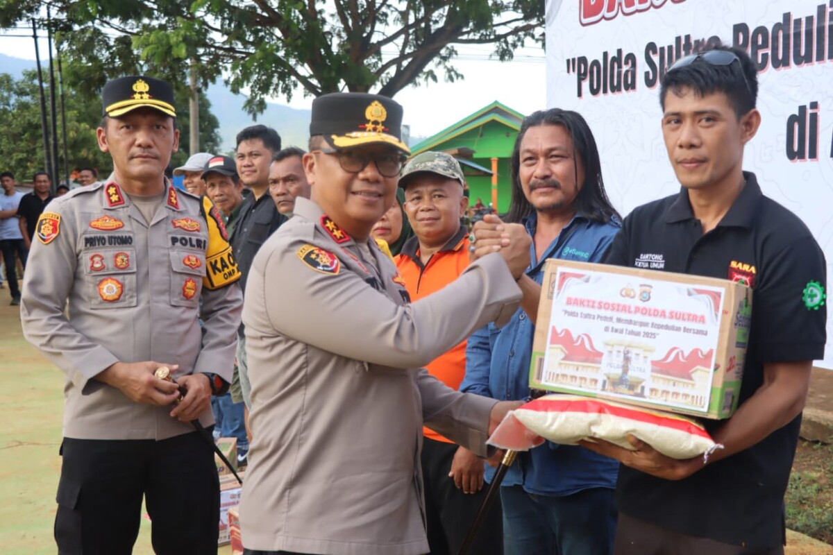 IndeksSultra.com, Konawe Utara- Kepala Kepolisian Daerah (Kapolda) Sulawesi Tenggara (Sultra), Irjen Pol. Dwi Irianto menyerahkan 200 paket sembako kepada masyarakat kurang mampu di Desa Pariama, Kecamatan Langkikima, Konawe Utara (Konut).