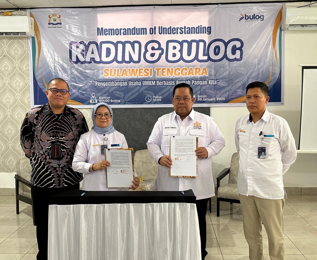 IndeksSultra.com, Kendari- Kamar Dagang dan Industri (Kadin) Sulawesi Tenggara (Sultra) dan Perusahaan Umum (Perum) Badan Urusan Logistik (BULOG) Sultra menandatangani nota kesepahaman atau memorandum of understanding (MoU), Senin 20 Januari 2025.