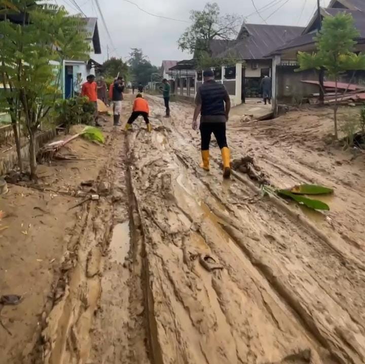 IndeksSultra.com, Kendari- Akses jalan di Lorong Segar, Kelurahan Pondambea, Kecamatan Kadia, Kota Kendari, Sulawesi Tenggara (Sultra) lumpuh akibat tumpukan lumpur yang terbawa banjir.