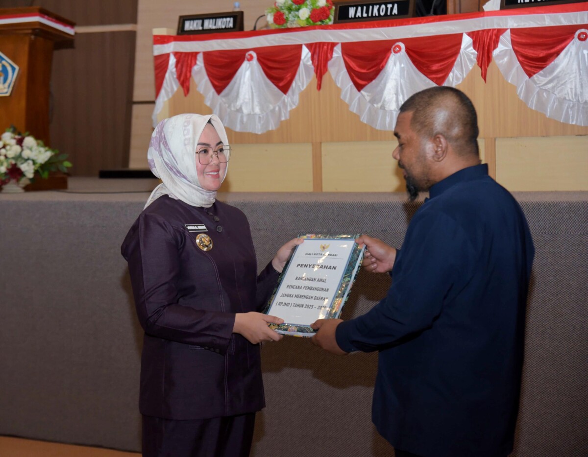 IndeksSultra.com, Kendari- Wali Kota Kendari, Siska Karina Imran, secara resmi menyerahkan dokumen Rancangan Awal Rencana Pembangunan Jangka Menengah Daerah (RPJMD) Kota Kendari tahun 2025–2029 kepada Ketua DPRD Kota Kendari dalam Rapat Paripurna yang digelar pada Senin 21 April 2025.