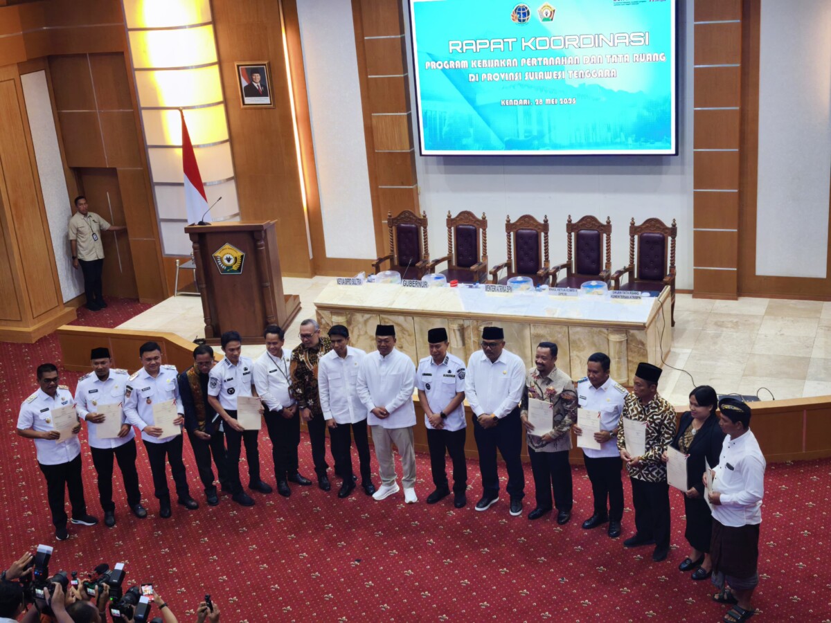 IndeksSultra.com, Sultra- Menteri Agraria dan Tata Ruang/Kepala Badan Pertanahan Nasional (ATR/BPN), Nusron Wahid menyerahkan secara simbolis 445 sertifikat tanah yang meliputi aset pemerintah serta tanah wakaf untuk rumah ibadah di wilayah Provinsi Sulawesi Tenggara (Sultra).