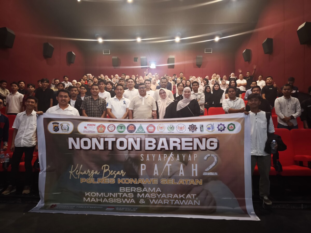 IndeksSultra.com, Kendari- Kepolisian Resor (Polres) Konawe Selatan (Konsel) menggelar kegiatan nonton bareng film “Sayap-Sayap Patah 2: Olivia” bersama sejumlah elemen masyarakat, mahasiswa, dan insan pers di salah satu bioskop di Kota Kendari pada Sabtu, 17 Mei 2025.