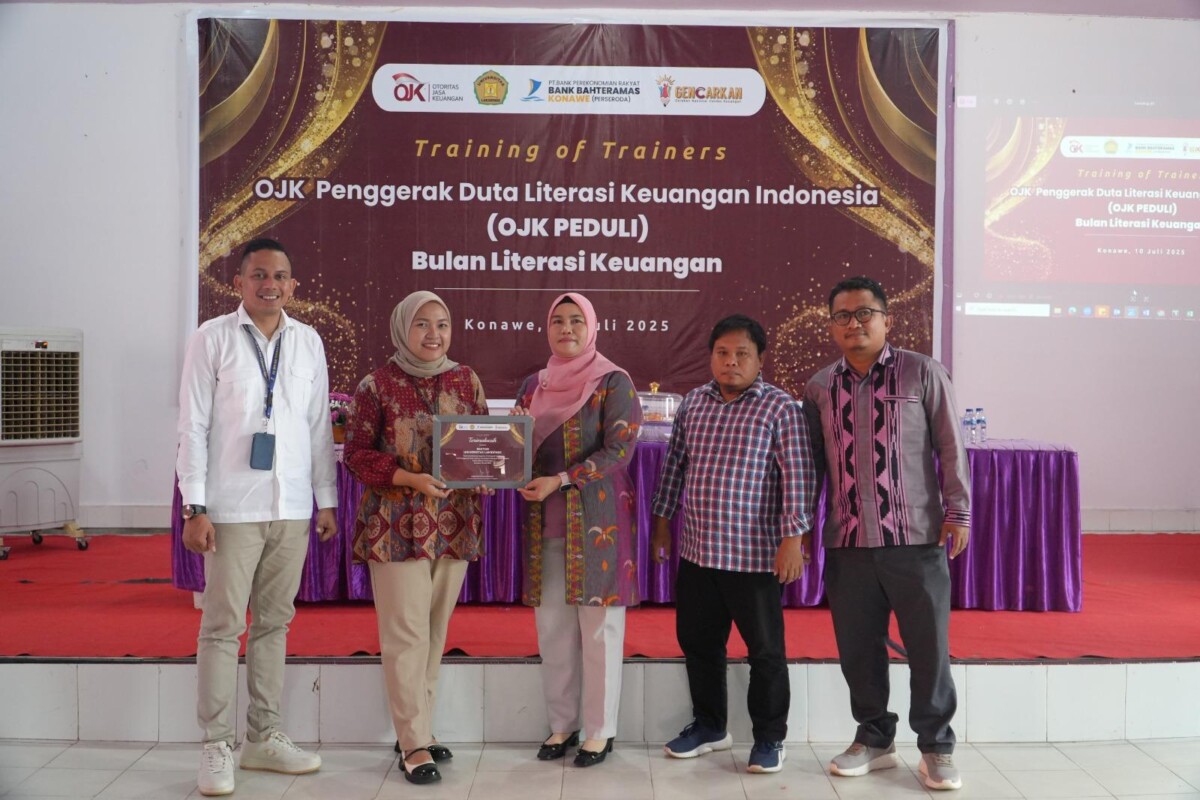 Sebagai bagian dari implementasi program, OJK Sulawesi Tenggara bekerja sama dengan PT BPR Bahteramas Konawe (Perseroda) menyelenggarakan kegiatan Training of Trainers (ToT) bagi calon duta literasi keuangan yang berlangsung di Universitas Lakidende pada 10 Juli 2025.