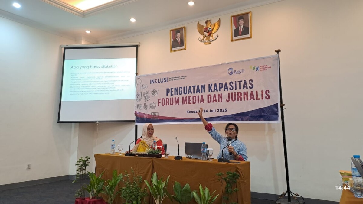 Sementara itu, Komisioner Komisi Informasi Provinsi Sulawesi Tenggara (Sultra), Yustina Fendrita yang turut hadir sebagai narasumber, mengajak peserta untuk merenungkan pola pemberitaan media terhadap perempuan dan kelompok rentan.