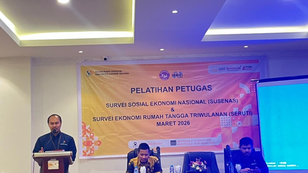 IndeksSultra.com, Kendari– Badan Pusat Statistik (BPS) Kabupaten Konawe Selatan (Konsel) menggelar pelatihan petugas Survei Sosial Ekonomi Nasional (SUSENAS) dan Survei Ekonomi Rumah Tangga Triwulanan (SERUTI) untuk periode Maret 2026.