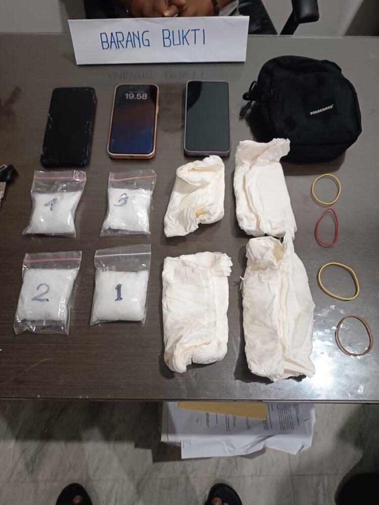 Selain narkotika, polisi turut mengamankan sejumlah barang bukti lain, seperti empat unit telepon genggam, tas selempang, karet gelang, tisu pembungkus, serta satu unit sepeda motor yang digunakan pelaku.