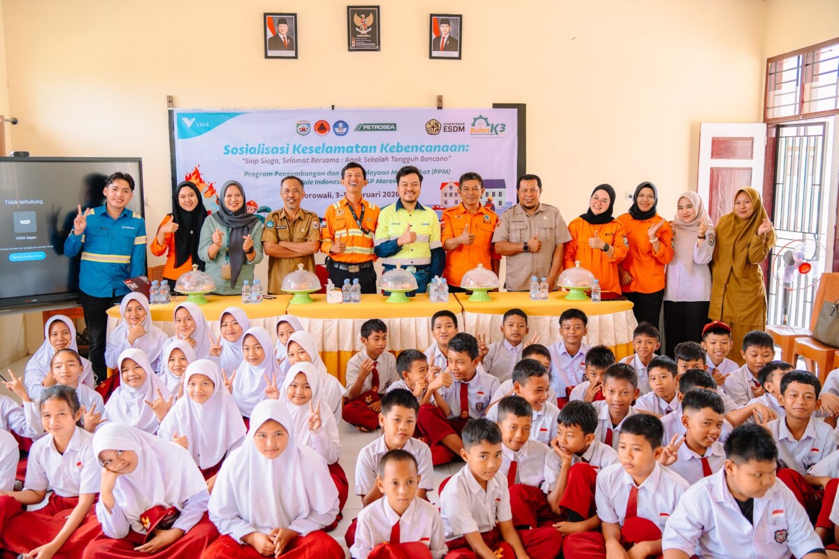 Melalui kolaborasi lintas sektor, PT Vale Indonesia Tbk bersama Badan Penanggulangan Bencana Daerah (BPBD) Kabupaten Morowali dan PT Petrosea Tbk menggelar kegiatan Sosialisasi Tanggap Bencana bagi siswa sekolah dasar.
