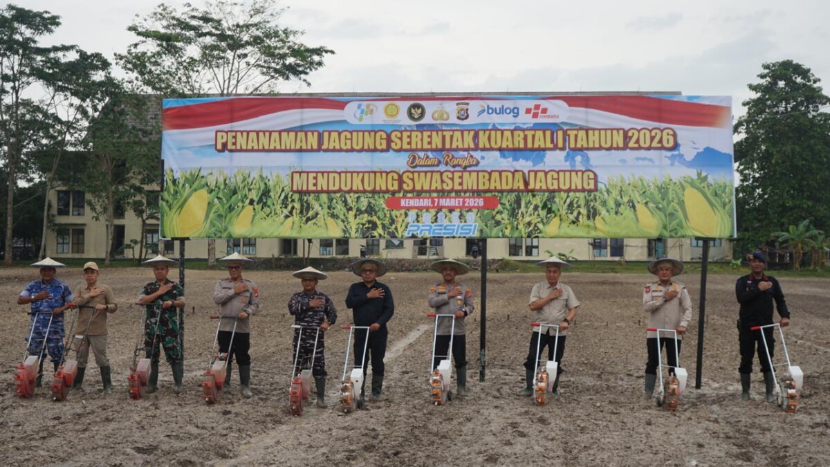 IndeksSultra.com, Kendari- Kepolisian Daerah Sulawesi Tenggara (Polda Sultra) menggelar kegiatan penanaman jagung serentak Kuartal I Tahun 2026 sebagai bagian dari dukungan terhadap program pemerintah menuju swasembada jagung nasional, Sabtu 7 Maret 2026.