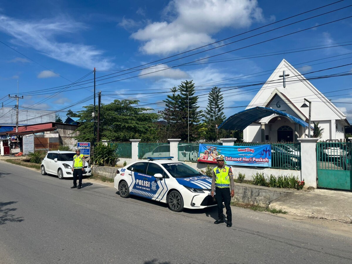 Kehadiran petugas bertujuan untuk memastikan kelancaran lalu lintas sekaligus memberikan rasa aman bagi jemaat yang melaksanakan ibadah.