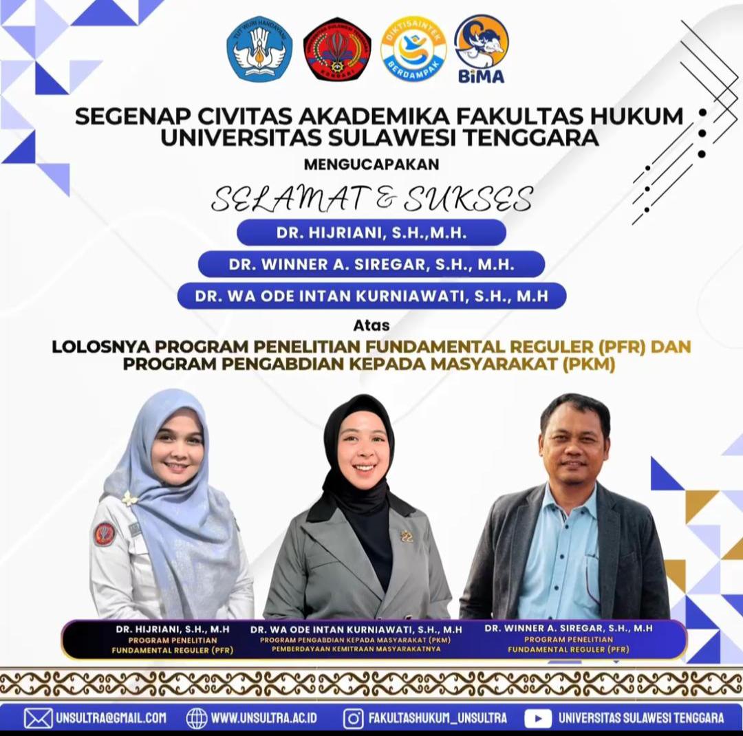 “Ini bukti bahwa dosen-dosen Unsultra mampu bersaing di tingkat nasional. Kami akan terus memperkuat kualitas riset dan pengabdian agar memberikan dampak nyata bagi masyarakat,” ujarnya.