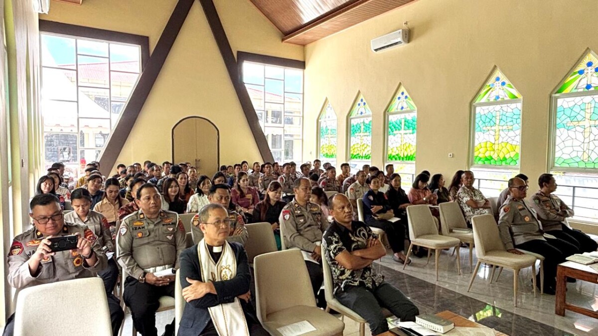 Kegiatan berlangsung khidmat di Gereja Oikumene Polda Sultra dan diikuti oleh personel serta keluarga besar kepolisian.